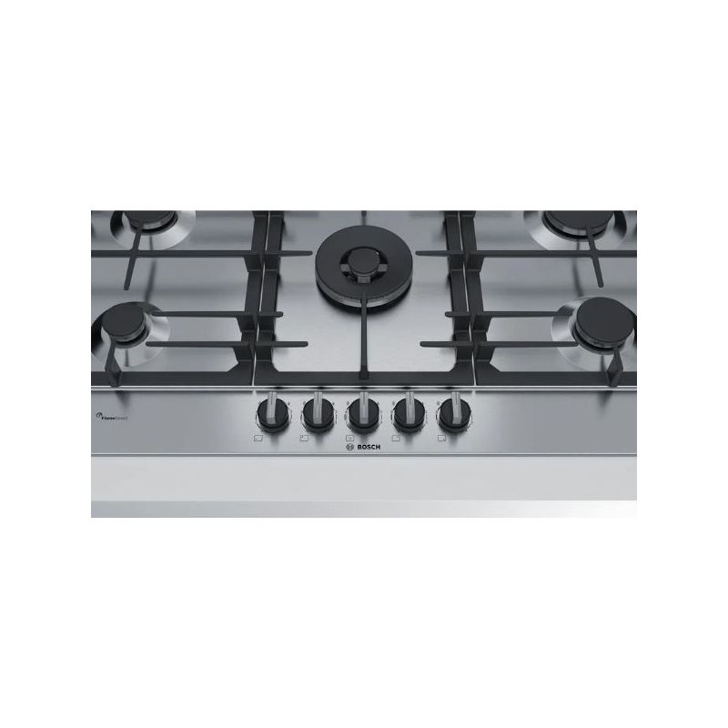 BOSCH |90cm| Steel Gas Hob | One-hand ignition via control knob via co ...